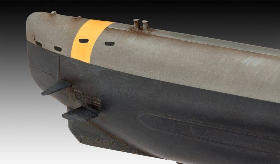 Features detailed surface structures, conning tower with extendable fittings, propeller, authentic decal set for three variants and a display stand.