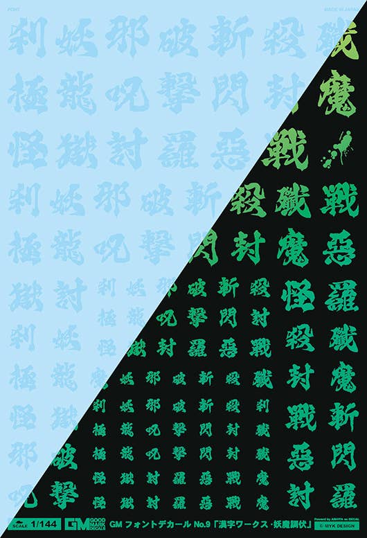 The font is an original calligraphy-style typeface, enhancing the appeal of your models with its dynamic design! The size of the decals is adjusted for each scale to fit perfectly on the shields, shoulders, chest, elbows, and knees of humanoid mecha. They can be used individually, but combining multiple decals allows for even greater customization and enjoyment.