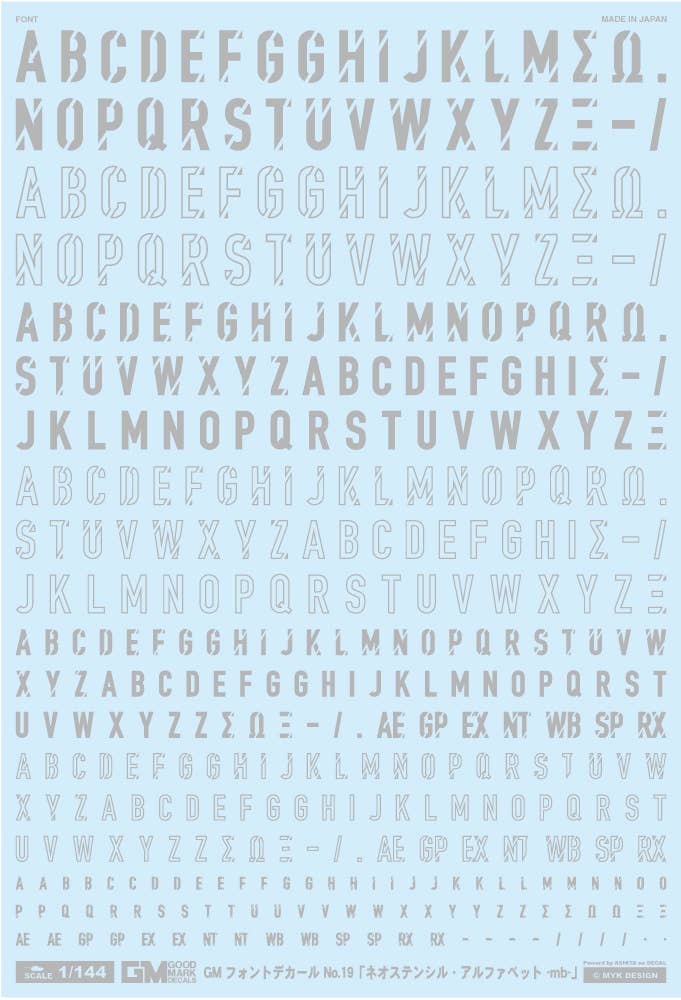 1/144 GM Font Decal No.19 Neo Stencil Alphabet -mb- Light Gray