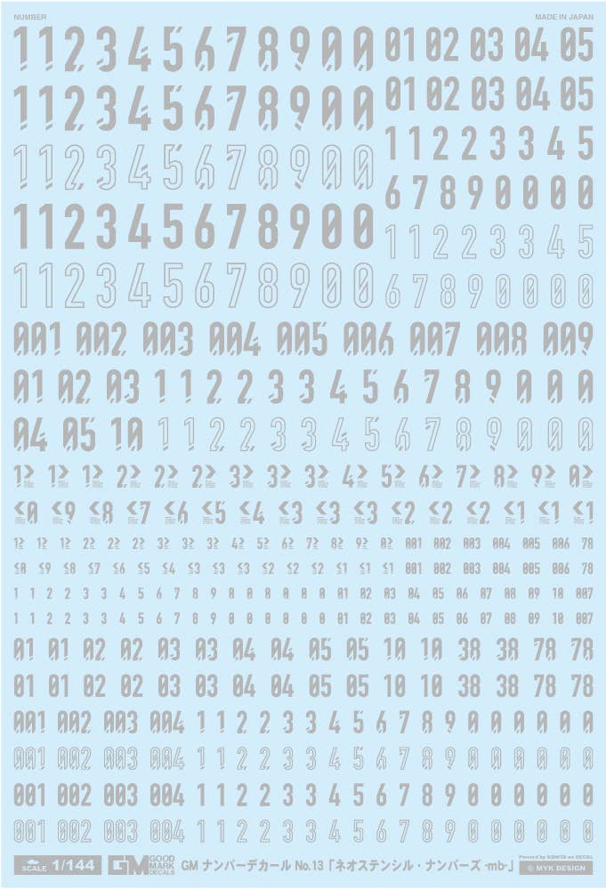 1/144 GM Number Decal No.13 Neo Stencil Numbers -mb- Light Gray
