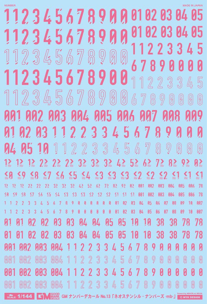1/144 GM Number Decal No. 13 Neo Stencil Numbers -mb- Warm Pink