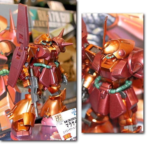 Very nice, limited issue of the HGUC Marasai, finished in metallic colours (rather than the regular flat colours it was originally molded in). Features all the same snap-fit assembly that you've come to expect from Bandai, as well as polycaps for moveable joints. It won't be around for long!