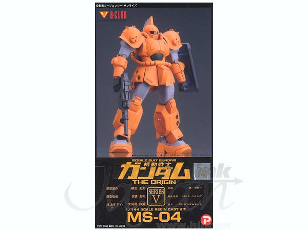 Based on the Mobile Suit that appeared in the "MS Gundam: The Origin" manga adaptation of the first Gundam anime series, MS-04 is an amazing design that has finally been brought to life in resin kit form, thanks to the wonderful people at B-Club! MS-04 comes in 51 clean resin parts for you to assemble and paint.