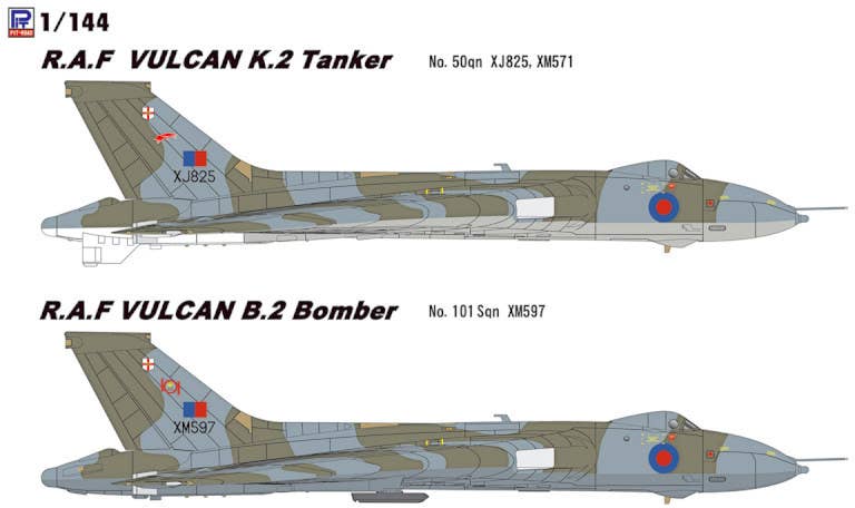 The Vulcan is a strategic bomber whose unit deployment began in 1956. In 1982, it participated in the Falklands War -- its first and last combat mission. Later, when the importance of aerial refueling missions was recognized again by the British military, six aircraft were converted to aerial refueling types. The Vulkan K.2 refueling type, which had a refueling drogue device attached to the tail cone and a fuel tank in the bomb bay, was operated until 1984.
