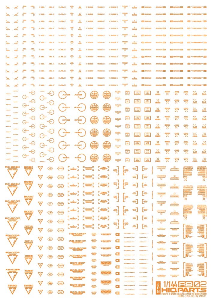 This is a sheet of water-slide decals, dry transfers, or self-adhesive stickers for use in detailing anime or science-fiction kits.