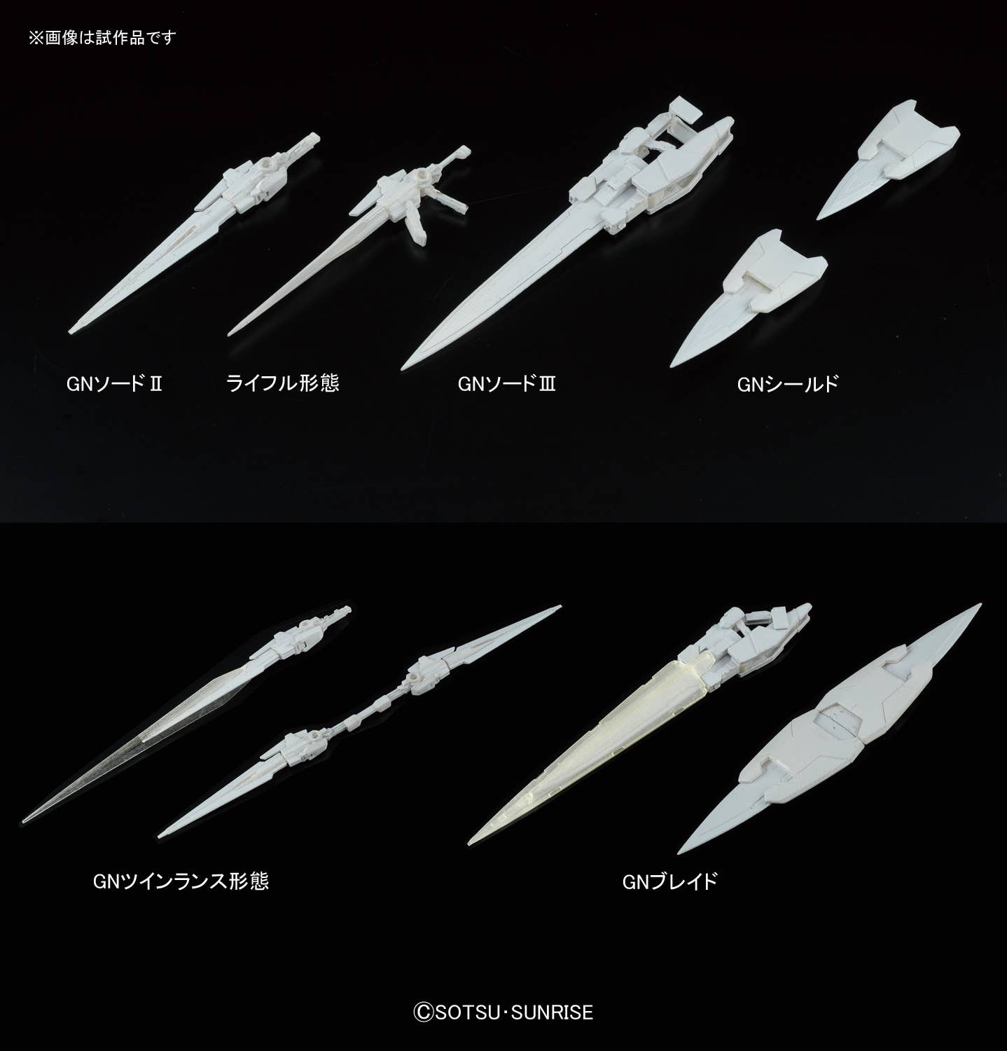 The OO Raiser gets a new Real Grade release! It's armed to the teeth with the GN blade, GN shield, GN twin lance, the GN sword II and III, a rifle, and of course the Raiser itself.