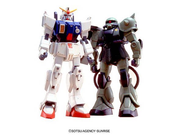 The first kit related to the show is the Gundam vs. Zaku II set -- a unique kit in two way. First of all, it contains two complete "Mobile Suit" kits, the RX-79 Gundam, and a MS-06J Zaku II (both shown above). The second reason it's unique is that the two kits are both "HG" grade. A step down from the awesome "MG" kits, but far better than the little 500 yen 1/144 kits we usually see. Besides the two robots, the kit also includes a number of accessories, including the Gundam's back-mounted cargo container, and eight different weapons for the two protagonists. All-in-all, a pretty good deal for 1,500 yen. This kit is available now.
