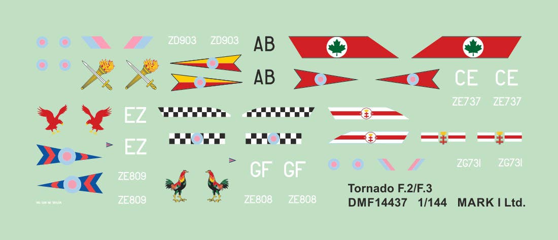 This is a sheet of water-slide or dry transfer decals for marking aircraft models.