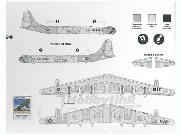 Hobby Craft's detailed kit of the monstrous RB-36 is huge even in 1/144 scale! Includes decals for USAF Cold War "Peacemaker" recon bombers.