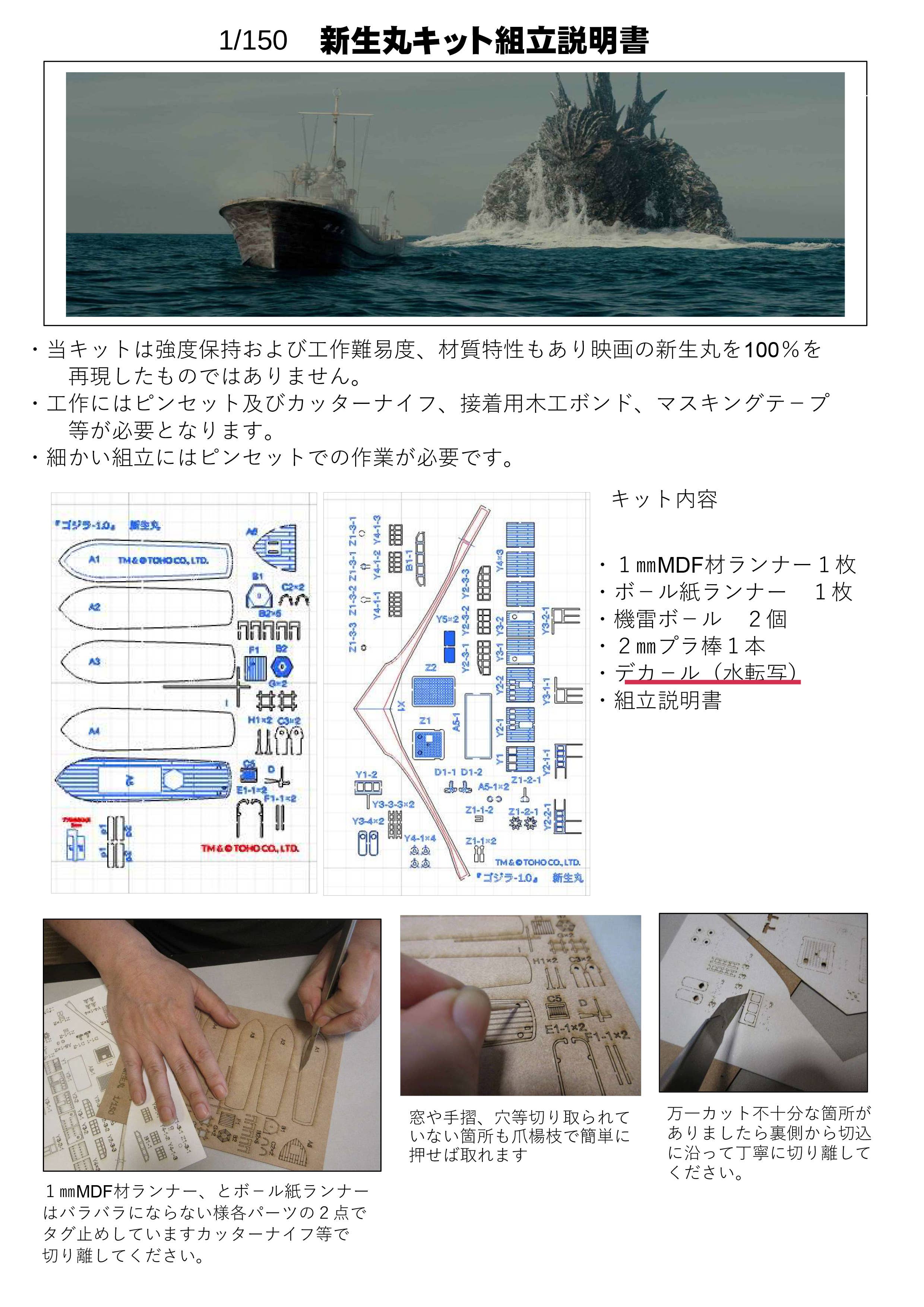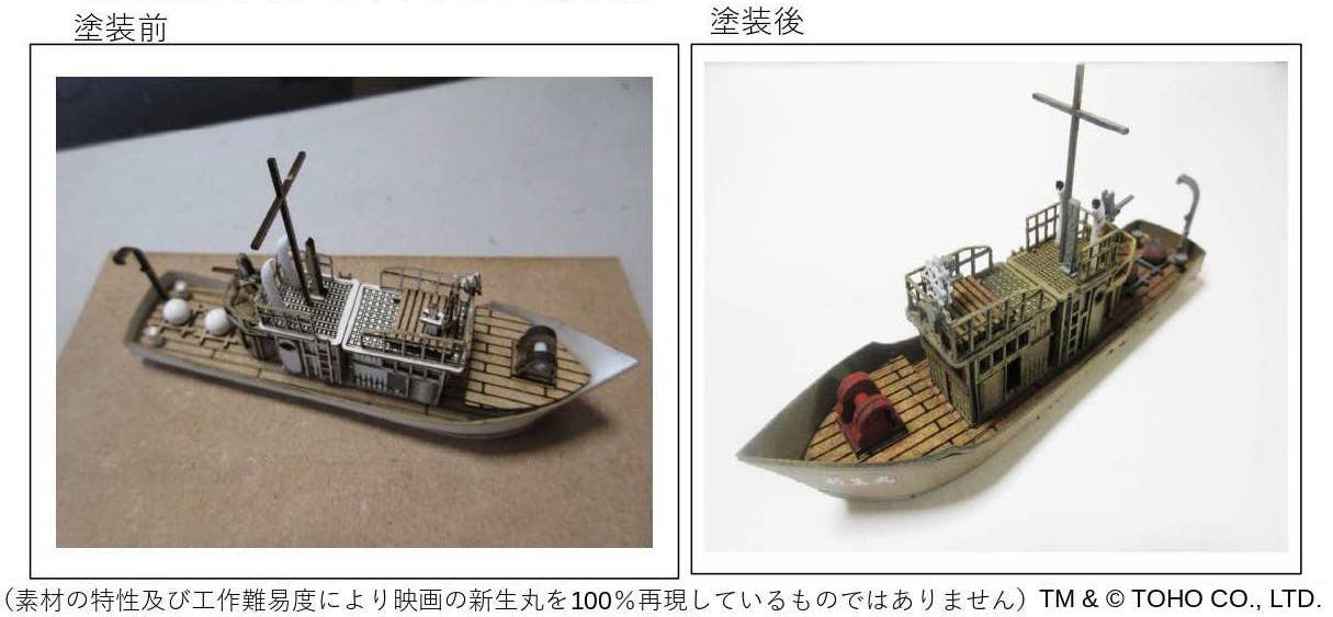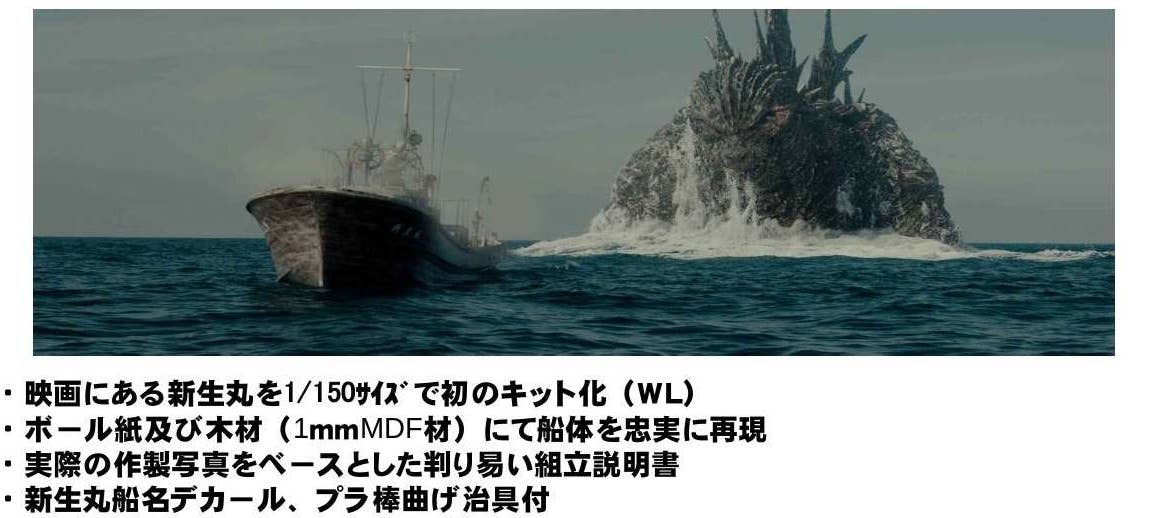 This 1/150-scale model kit of the Shinsei Maru from "Godzilla Minus One" utilizes both paper and wood (1mm MDF) to recreate the rugged little minesweeper! The instructions are easy to follow, with plenty of photos of the model's actual construction; a decal of the ship's name and a plastic rod bending jig are included too. This will be a truly unique item in your collection -- place your order today!