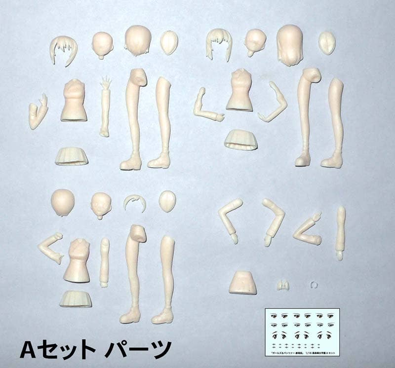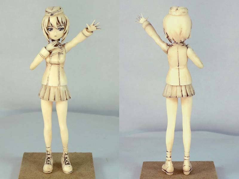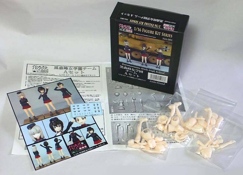 This resin-cast set includes parts to build three characters from "Girls und Panzer."
