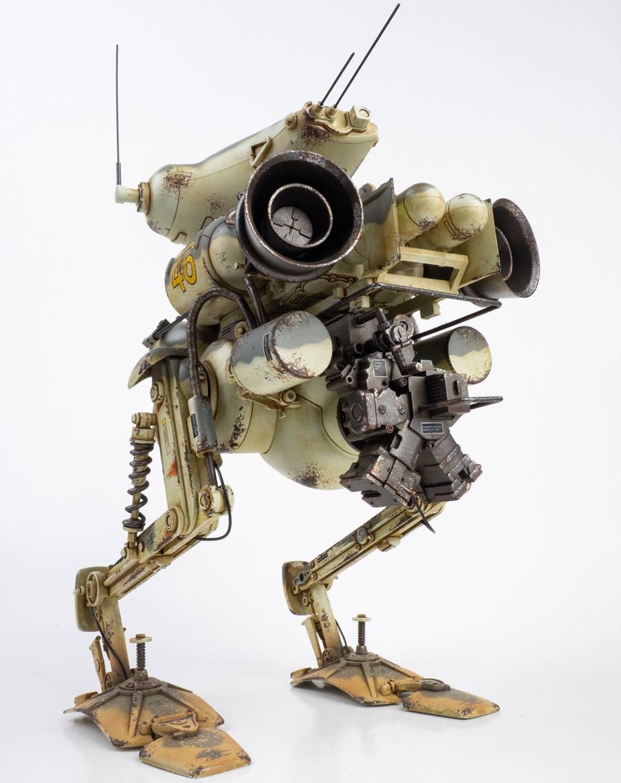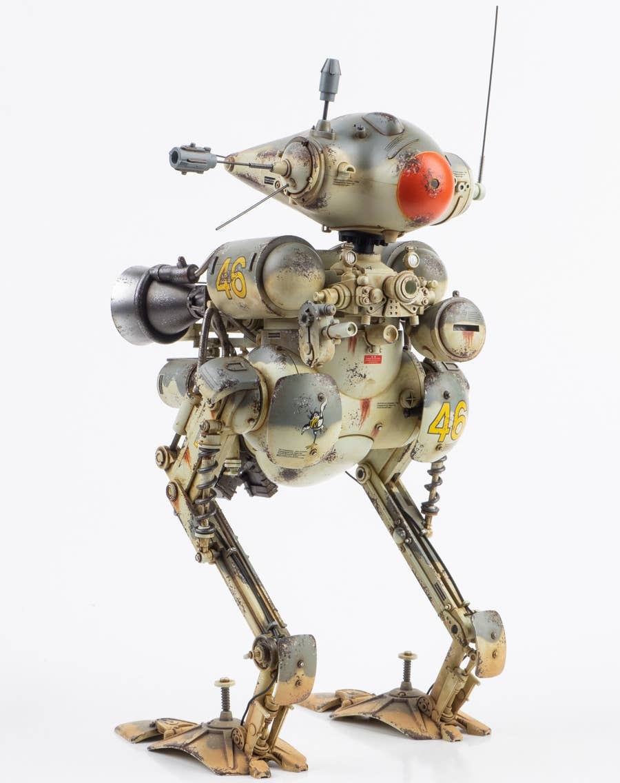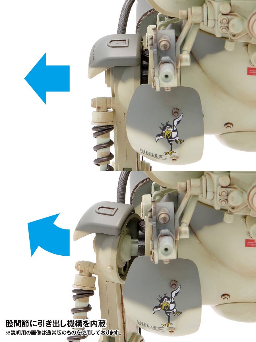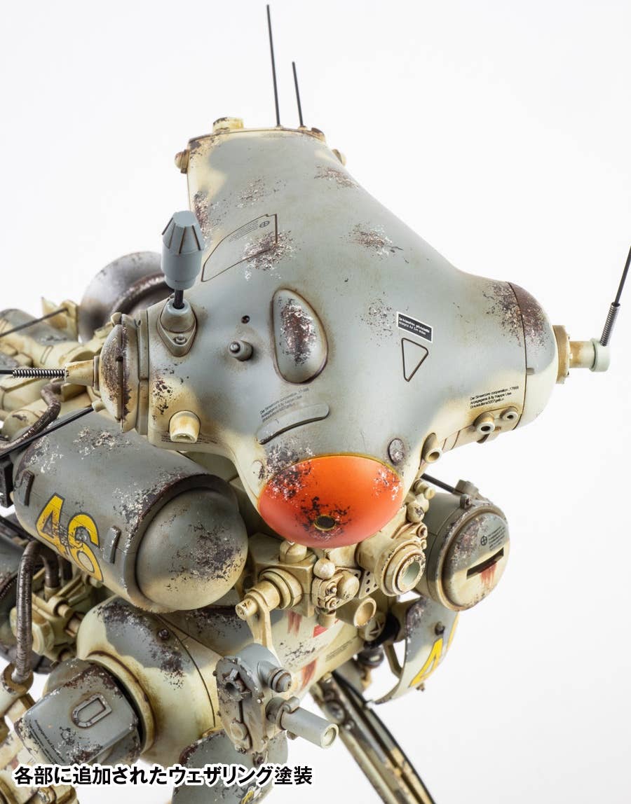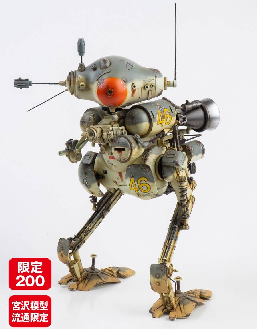 This outstanding "Maschinen Krieger" model is an exclusive from Miyazawa Distributing, with only 200 pieces available! It's prepainted and preassembled, and depicts the legendary Luna Gans with an appealingly weathered finish. It features movable parts with the legs made of metal, LED lights (requires two CR2032 types, sold separately), and draw-out joints in the crotch area. The marking on its head is also temperature-sensitive, turning from orange to yellow when warmed, and returning to orange when cooled! Every "Ma.K" fan needs this amazing mecha in their collection -- place your order today!