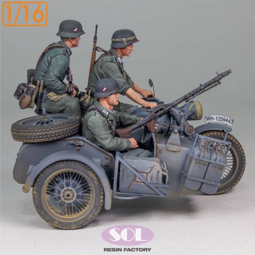 1/16 WWII German KS750 Motorcycle with Sidecar & Troopers (3D printed kit)