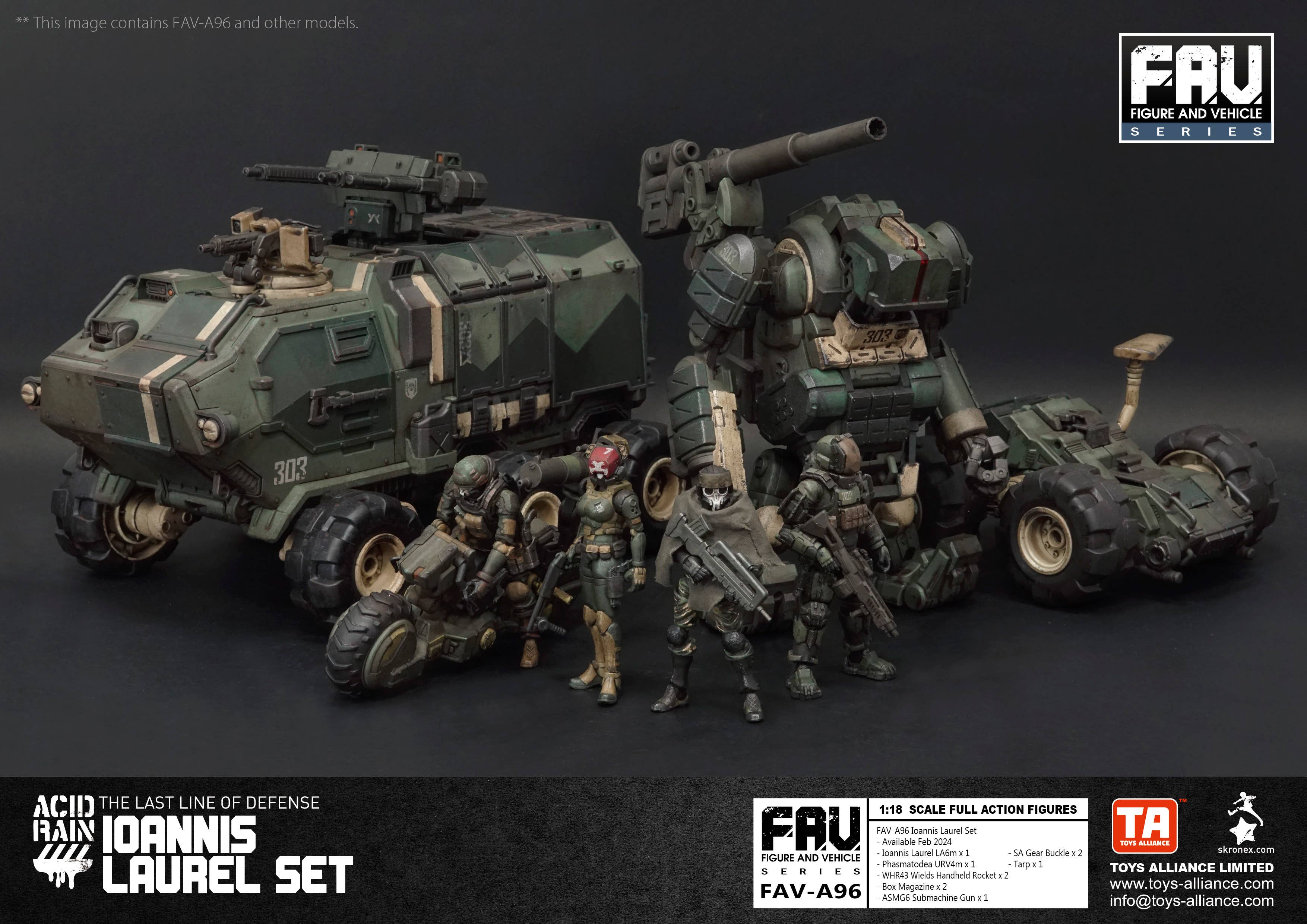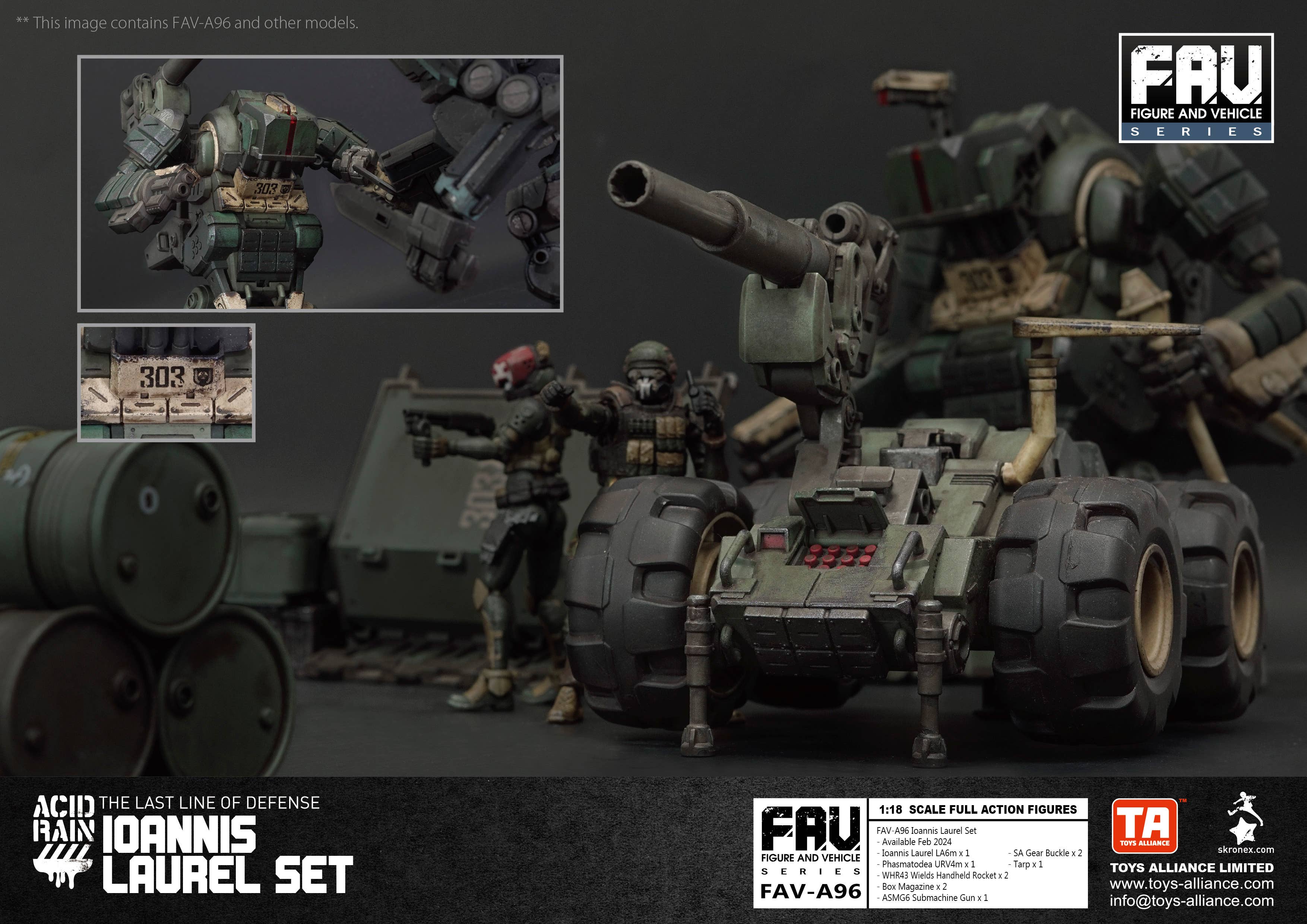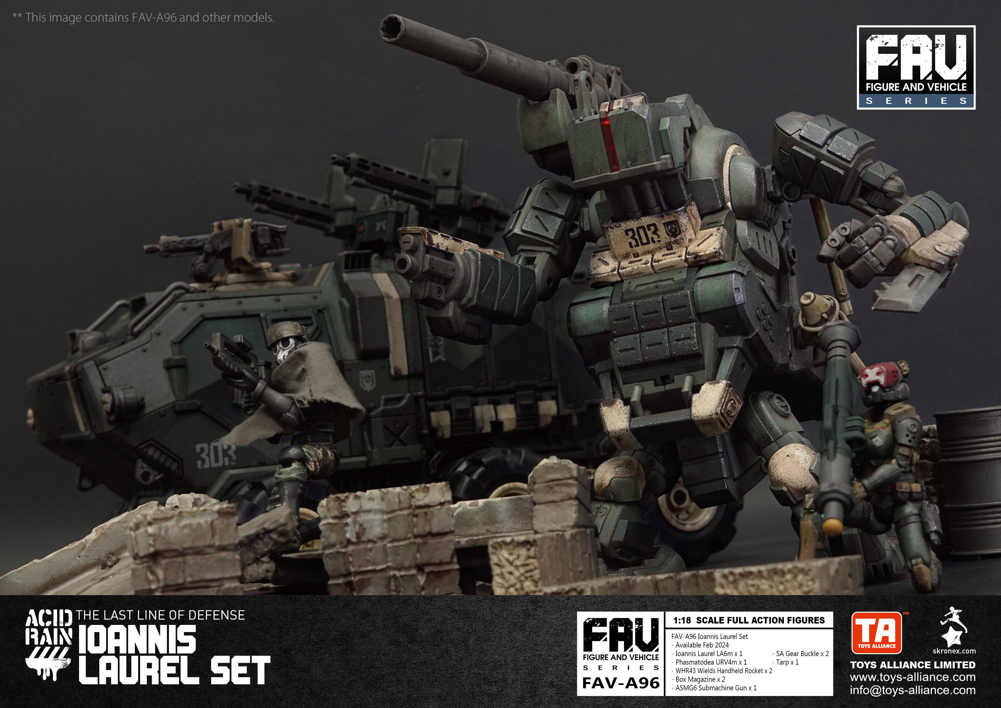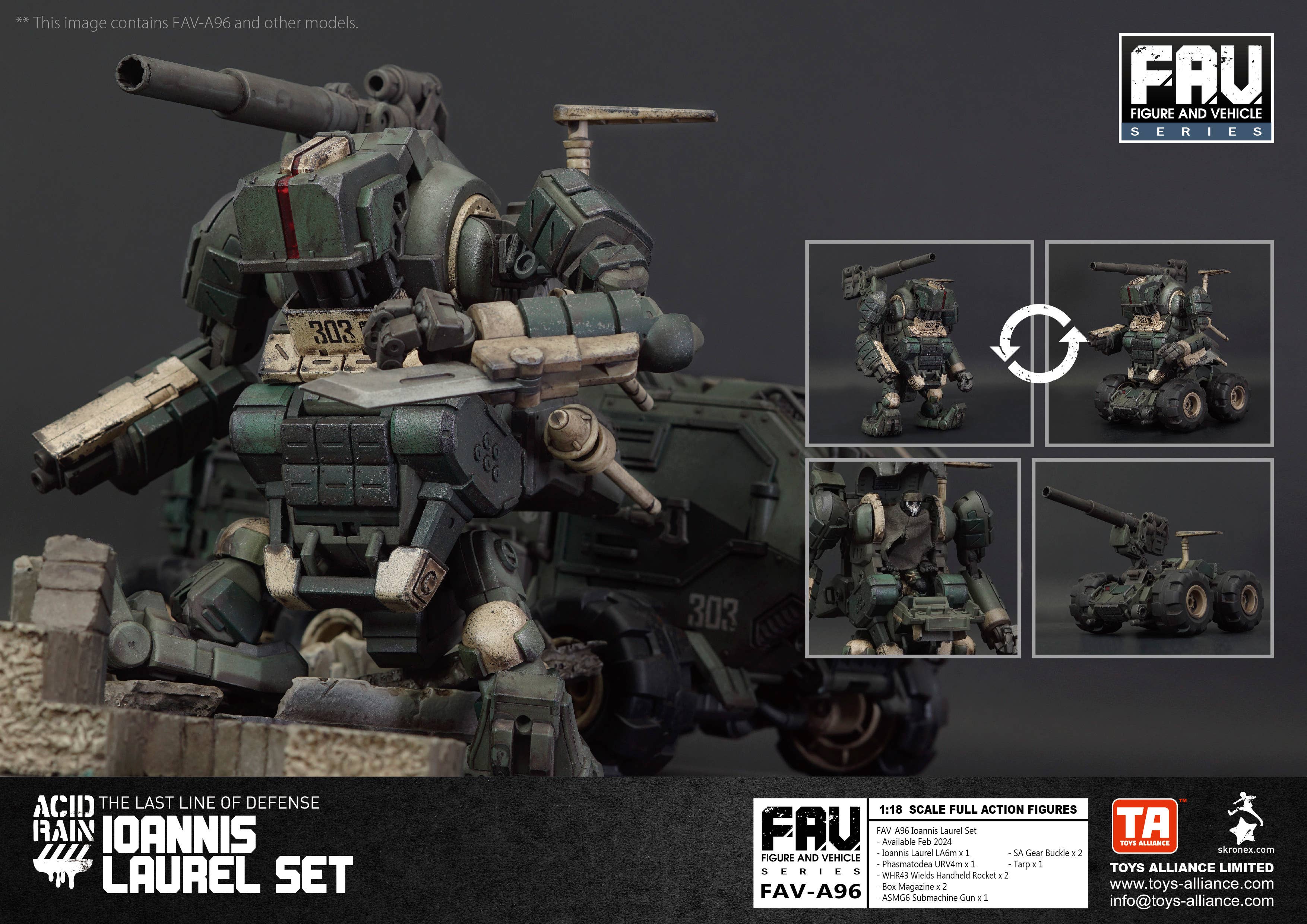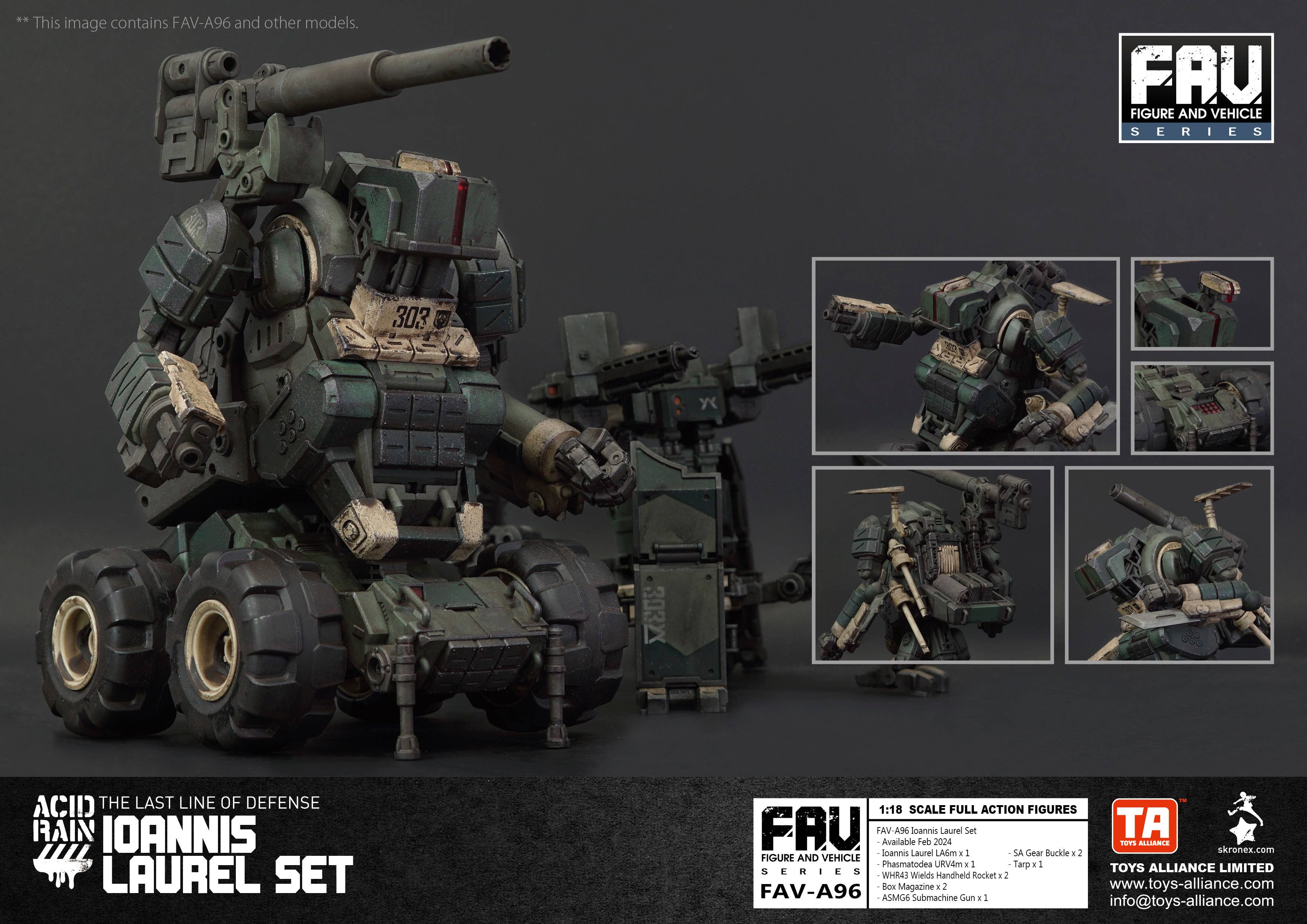 Toys Alliance Limited adds the FAV-A96 Ioannis Laurel mech to their "Acid Rain" action-figure lineup! It's highly posable and comes with the Phasmatodea URV4 vehicle; lots of weapons are also included. Order them for your own collection today!