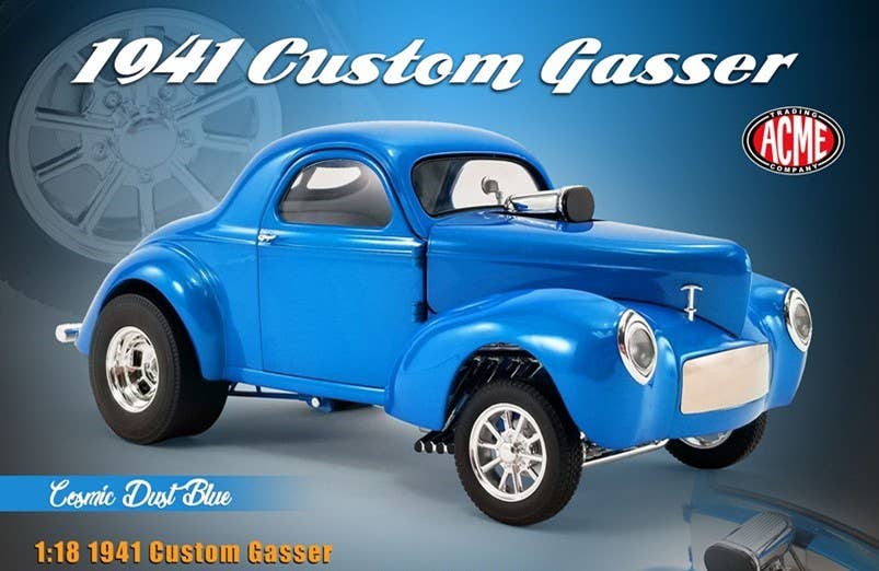 Acme's completed die-cast display model of the 1941 Custom Gasser has newly tooled wheels, and also features: