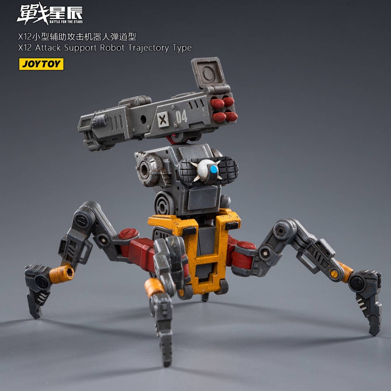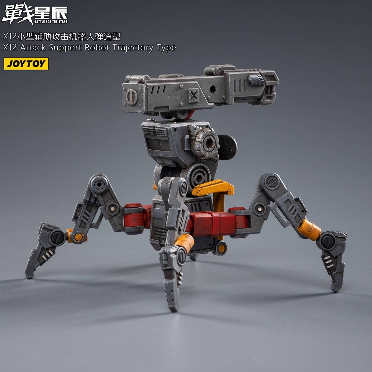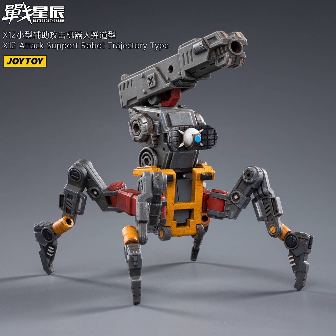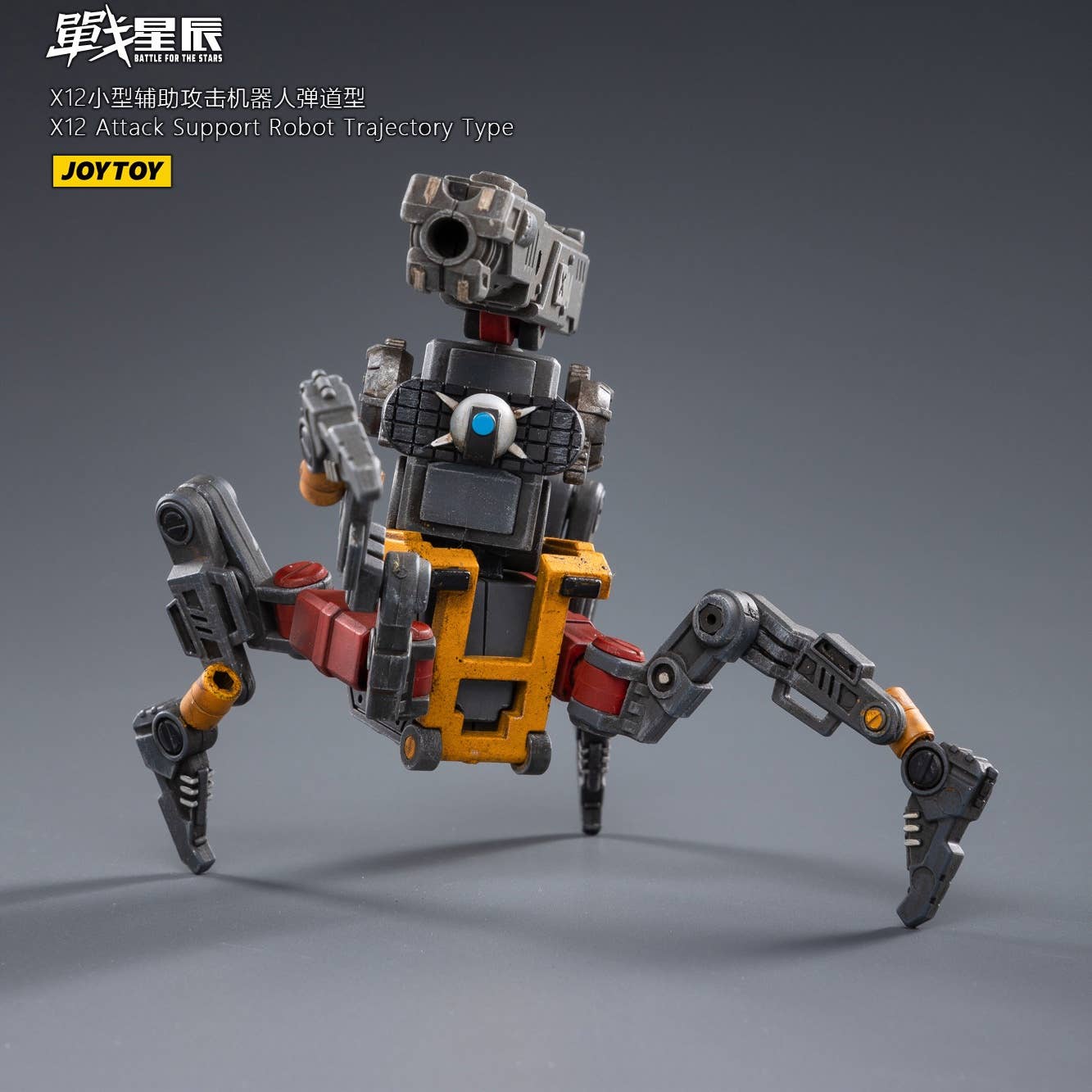 JoyToy brings the X12 Attack Support Robot, Trajectory Type, to their "Battle for the Stars" lineup! This fully posable quadrupedal robot is armed with a cannon for maximum firepower. The other figure shown is not included. Order yours today!