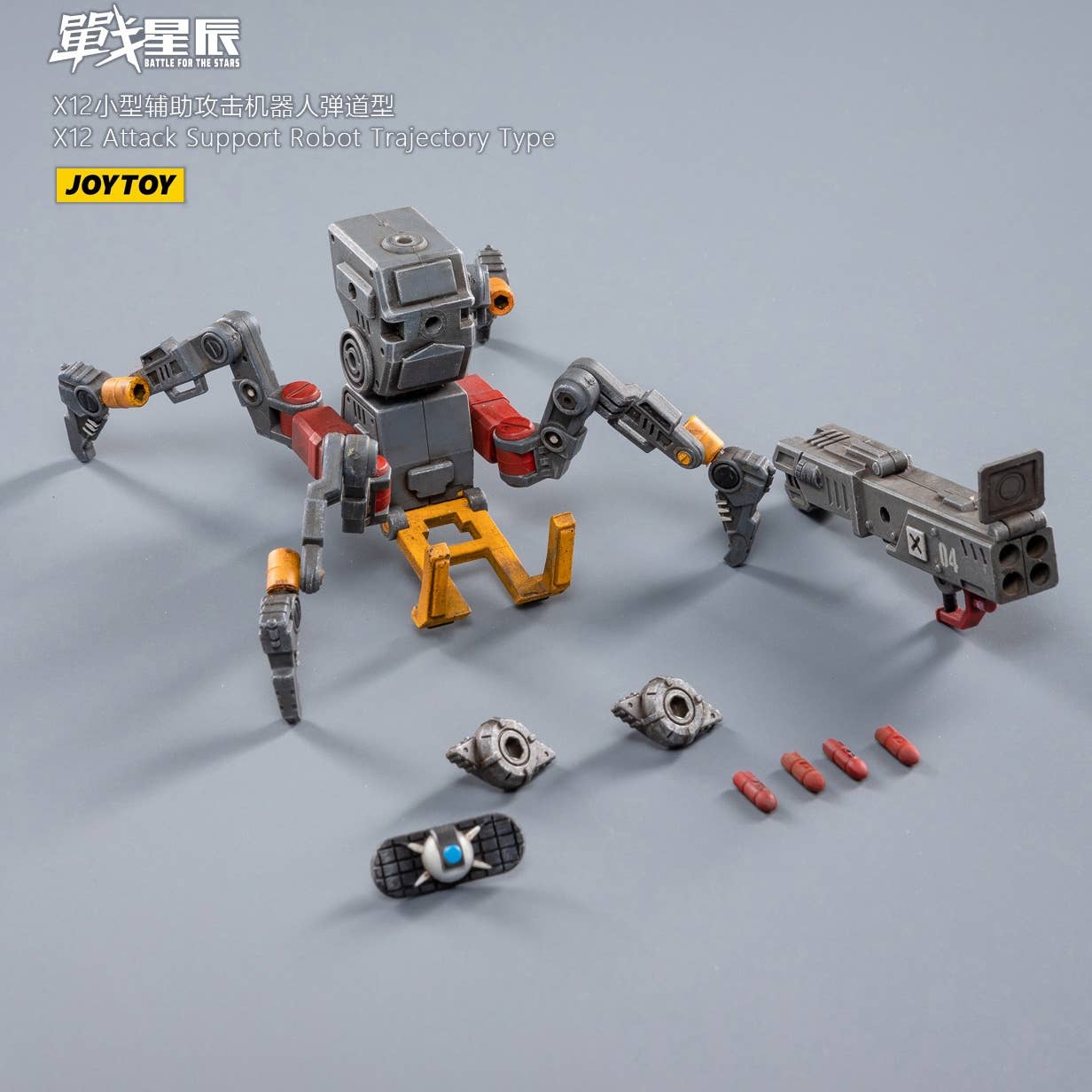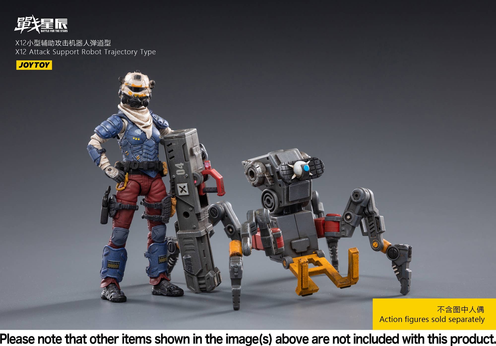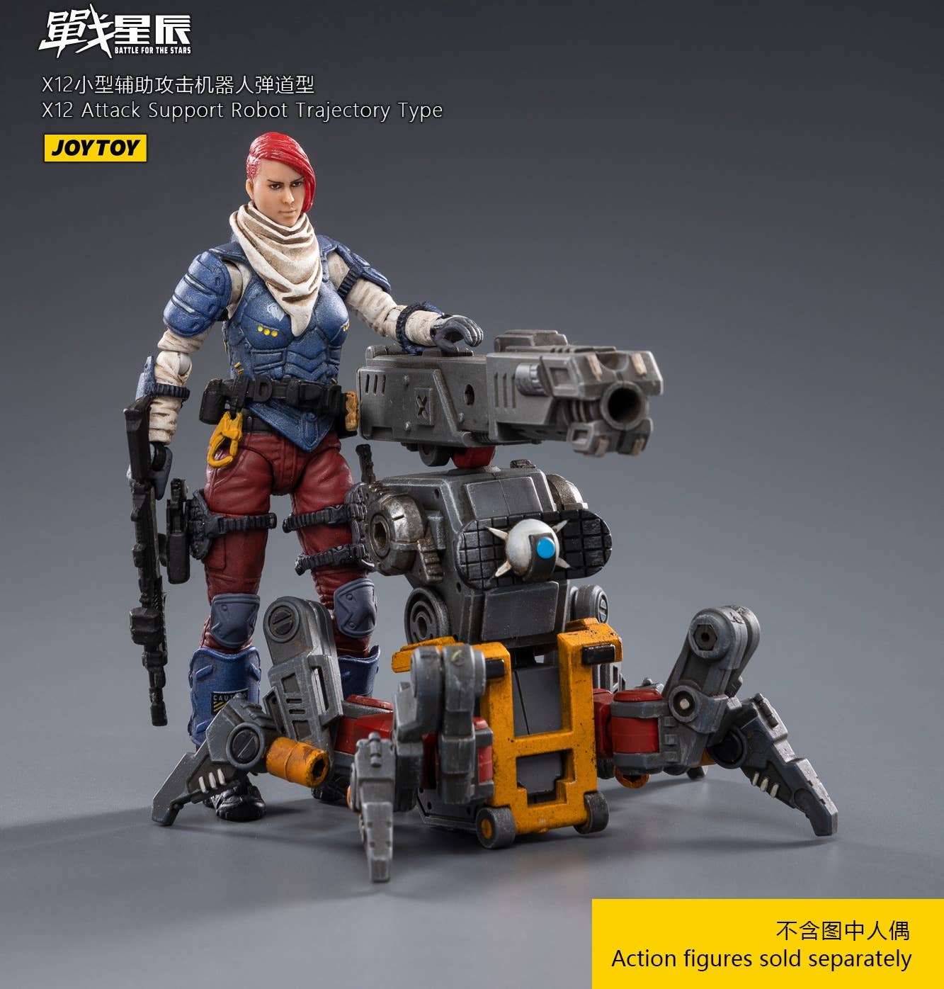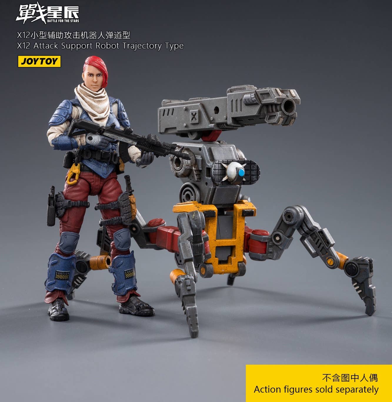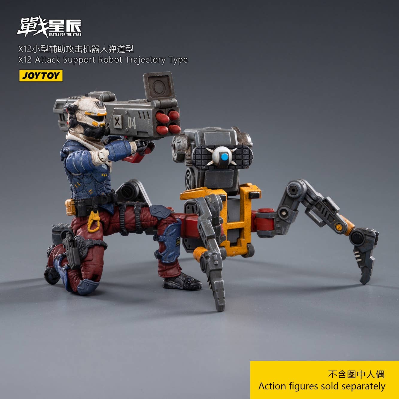 JoyToy brings the X12 Attack Support Robot, Trajectory Type, to their "Battle for the Stars" lineup! This fully posable quadrupedal robot is armed with a cannon for maximum firepower. The other figure shown is not included. Order yours today!