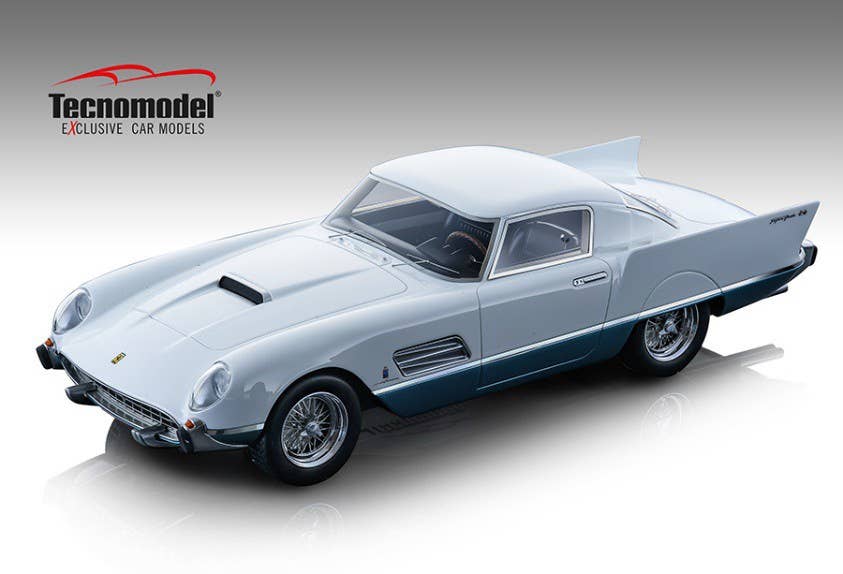 The Ferrari 410 Superfast was unveiled at the 1956 Paris Auto Show, and showed off its American design influence with its prominent tailfins and two-toned paint job. Order this completed display model for your own collection today!
