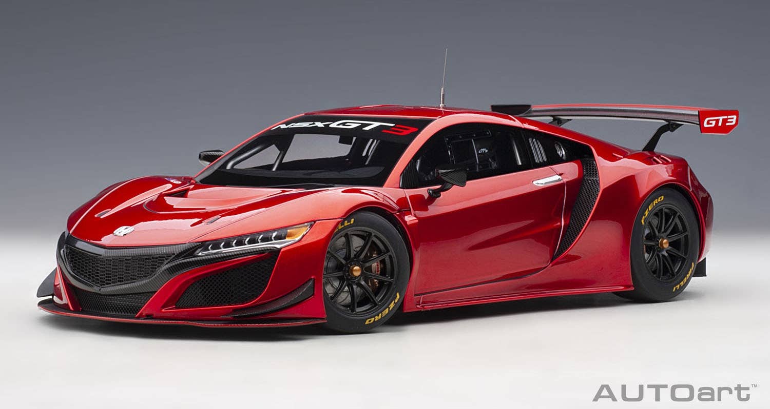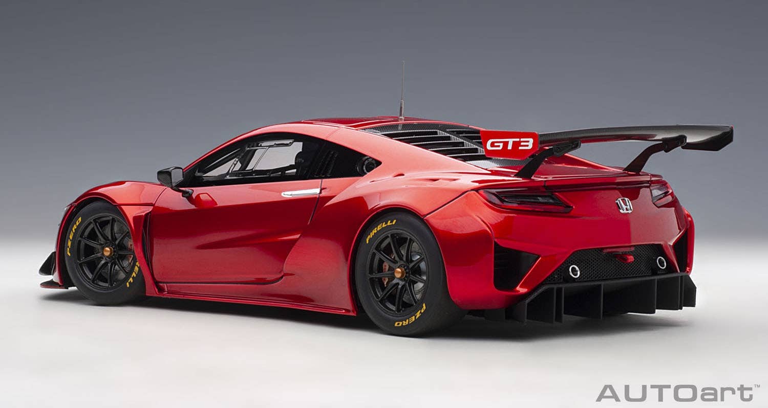 The 2018 Honda NSX GT3 is based on a commercial vehicle, omitting 4-wheel drive and hybrid options, and changed to a 3.5-liter V6 twin turbo engine. It's a racing machine manufactured to comply with the FIA-GT3 standard. Honda has been participating in GT races worldwide since 2018, including Japan's "Super GT" GT300 class. Get this powerful machine for your own collection today!