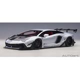 Auto Art Japan brings us an outstanding completed display model (made of specially blended ABS with a diecast inner frame) of the Lamborghini Aventador with customization by Liberty Walk! This high-performance beast is now a super-wide, super-low-down speed machine with LB Walk's aggressive style; the trunk, hood and doors open so you can admire the power-packed V12 engine, air suspension unit in the front trunk, and colorful interior. Order this monster machine for your own collection today!