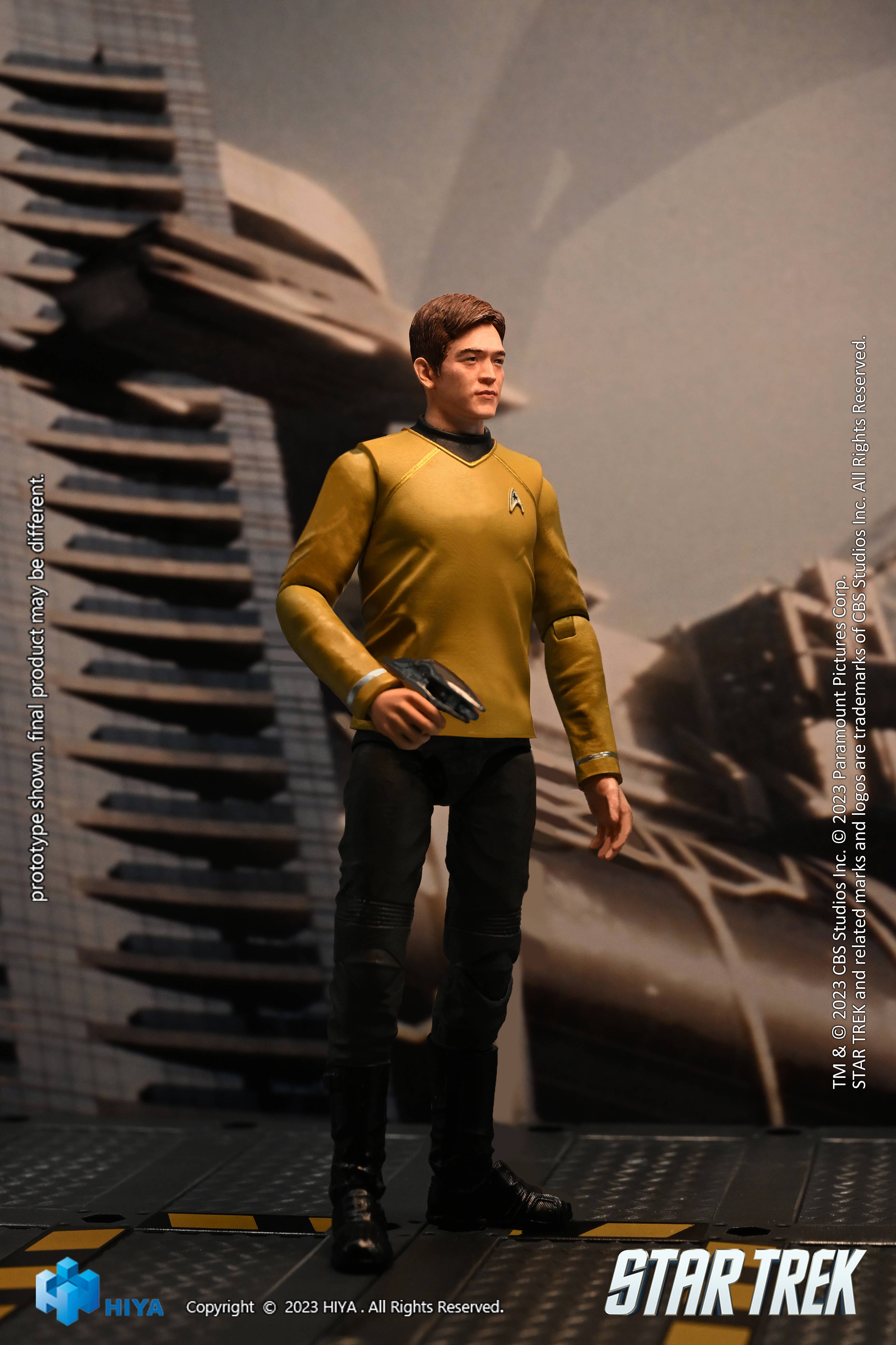 Lieutenant Sulu from the 2009 movie "Star Trek" is now an amazingly detailed 1/18-scale "Exquisite Mini" action figure from Hiya Toys! He's ready for action with interchangeable hands, plus his communicator and phaser. Order him for your own collection today!