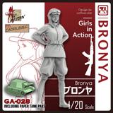 Here comes Bronya from Zipla's ongoing "Girls in Action" figure series! Bronya adopts a determined pose, with an old-style flight helmet, tunic jacket and trousers worn tucked into boots; is she a lady pilot or a steampunk time traveler? That's up to you -- order her today, assemble her, paint her, and your life will never be the same!