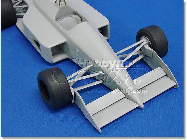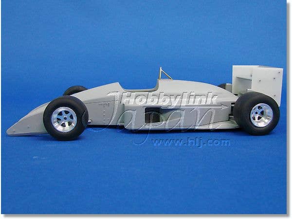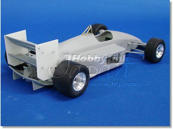 This is a racing car model kit assembled from parts made of resin, white metal, photo-etched metal and possibly other materials.