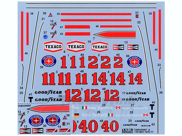 This is a sheet of water-slide decals for marking car models.