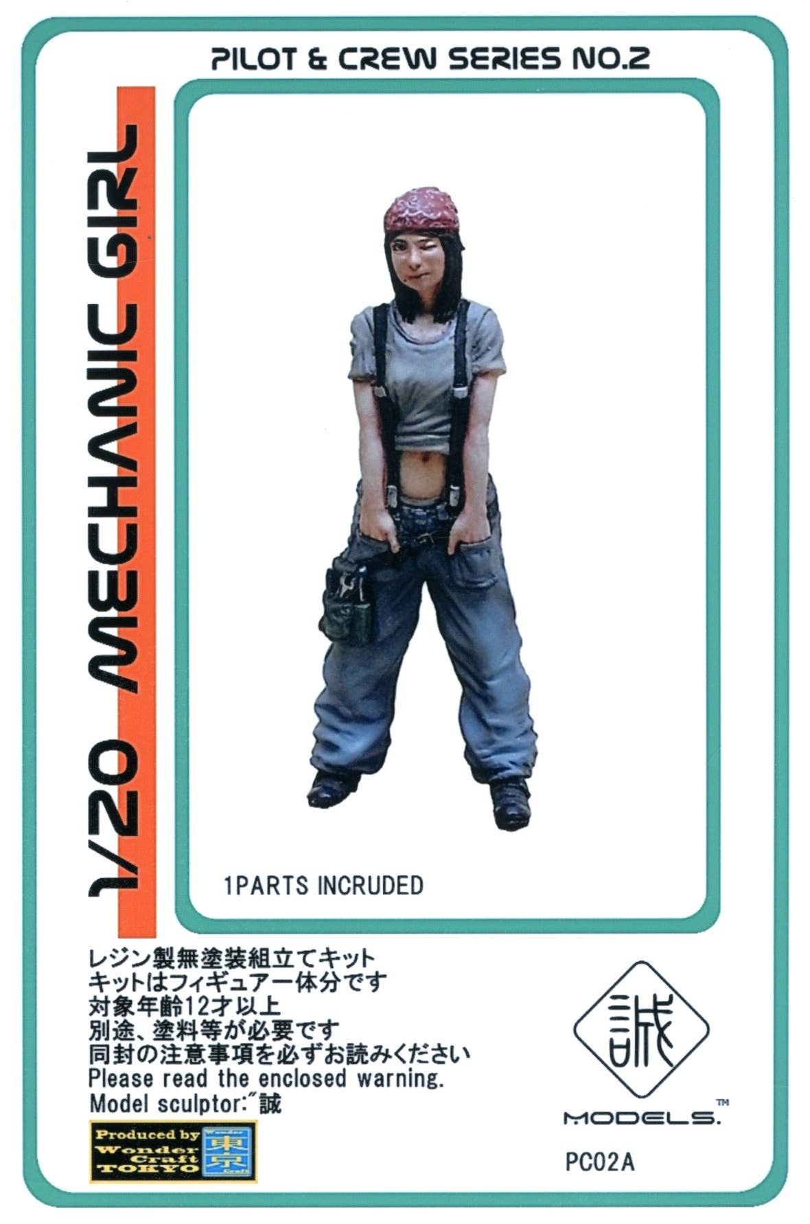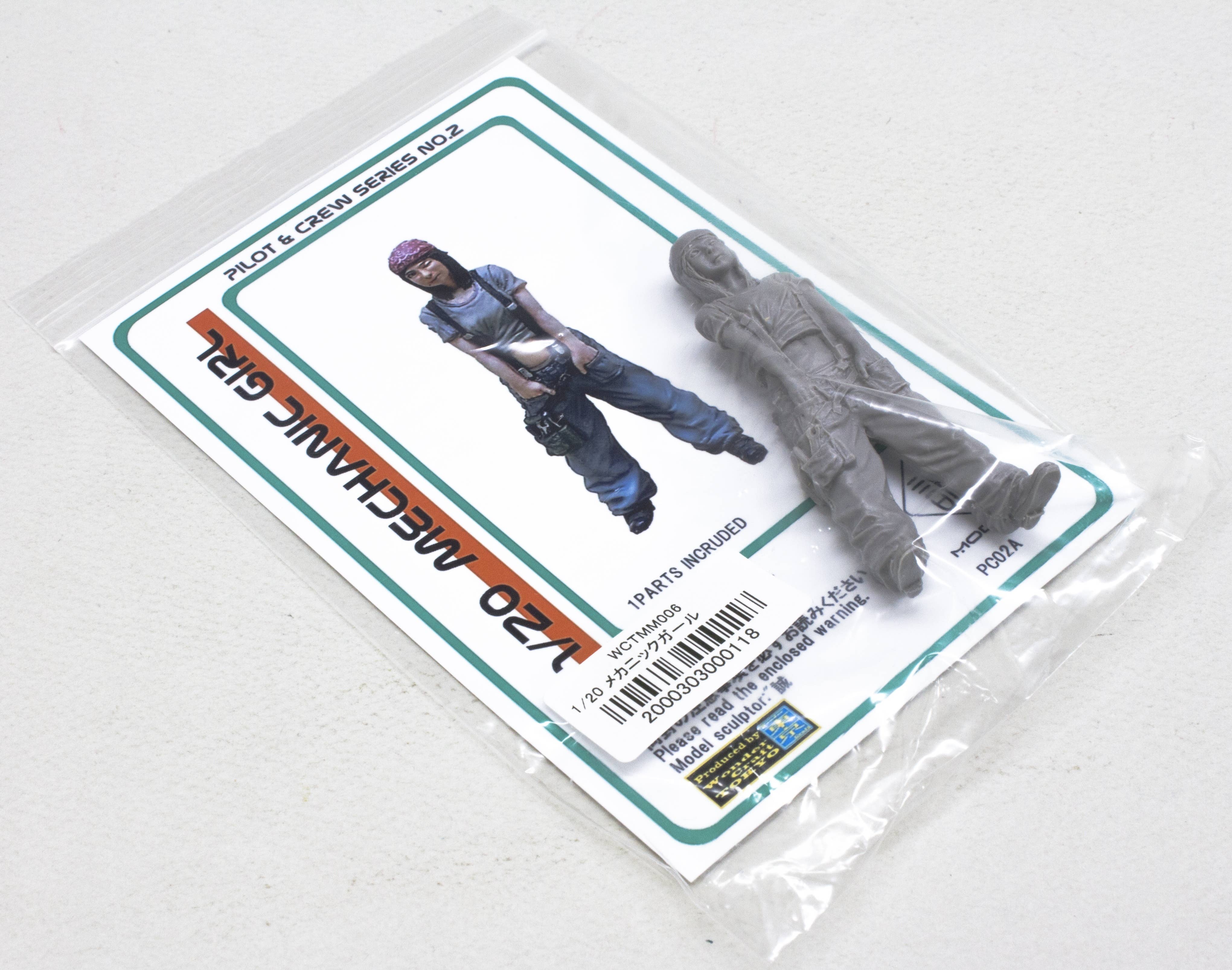 This mechanic is ready to get to work! The nicely cast resin figure strikes a relaxed and natural pose, and features plenty of interesting small details, such as her tools in her pockets, and various pockets and straps on her clothing.