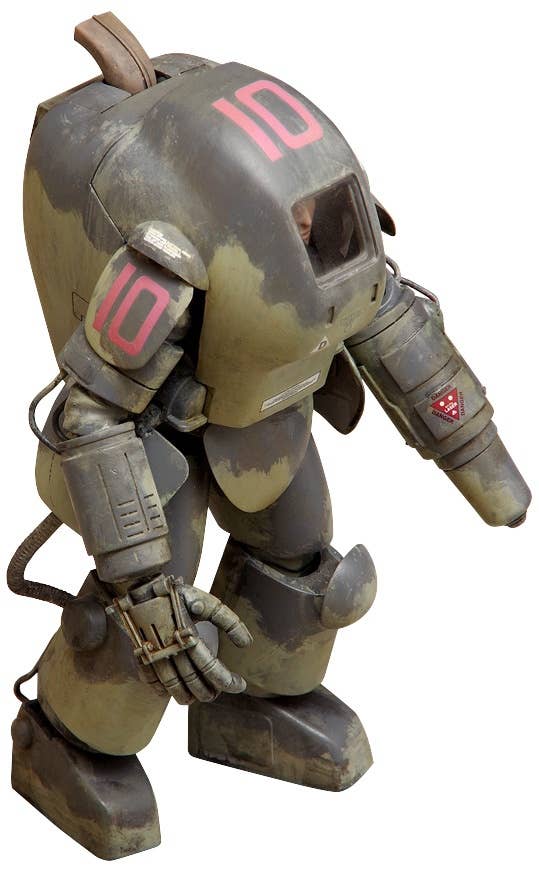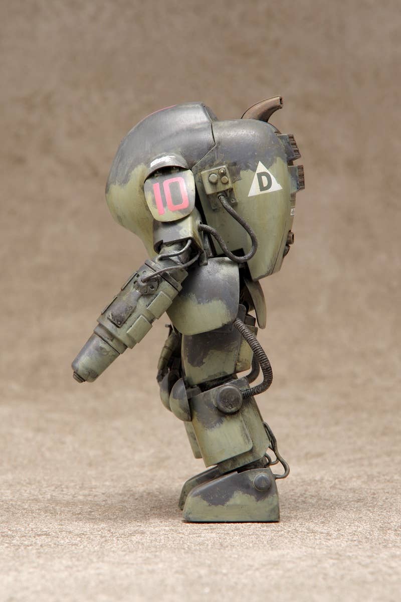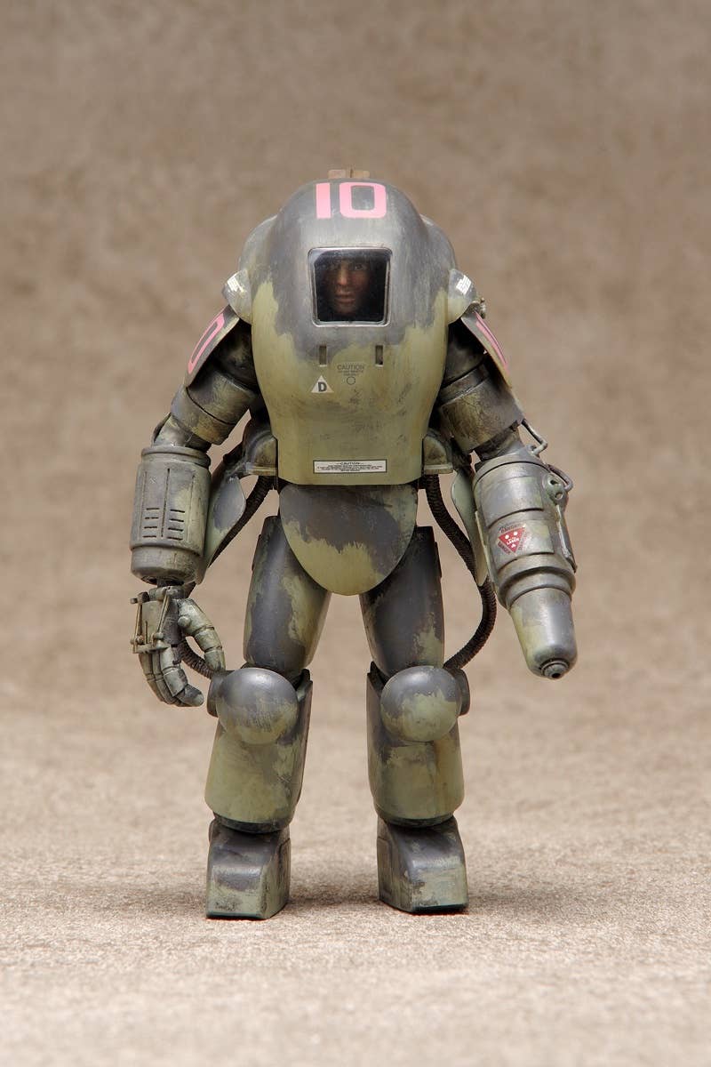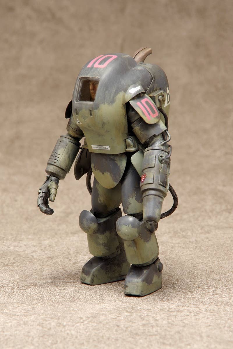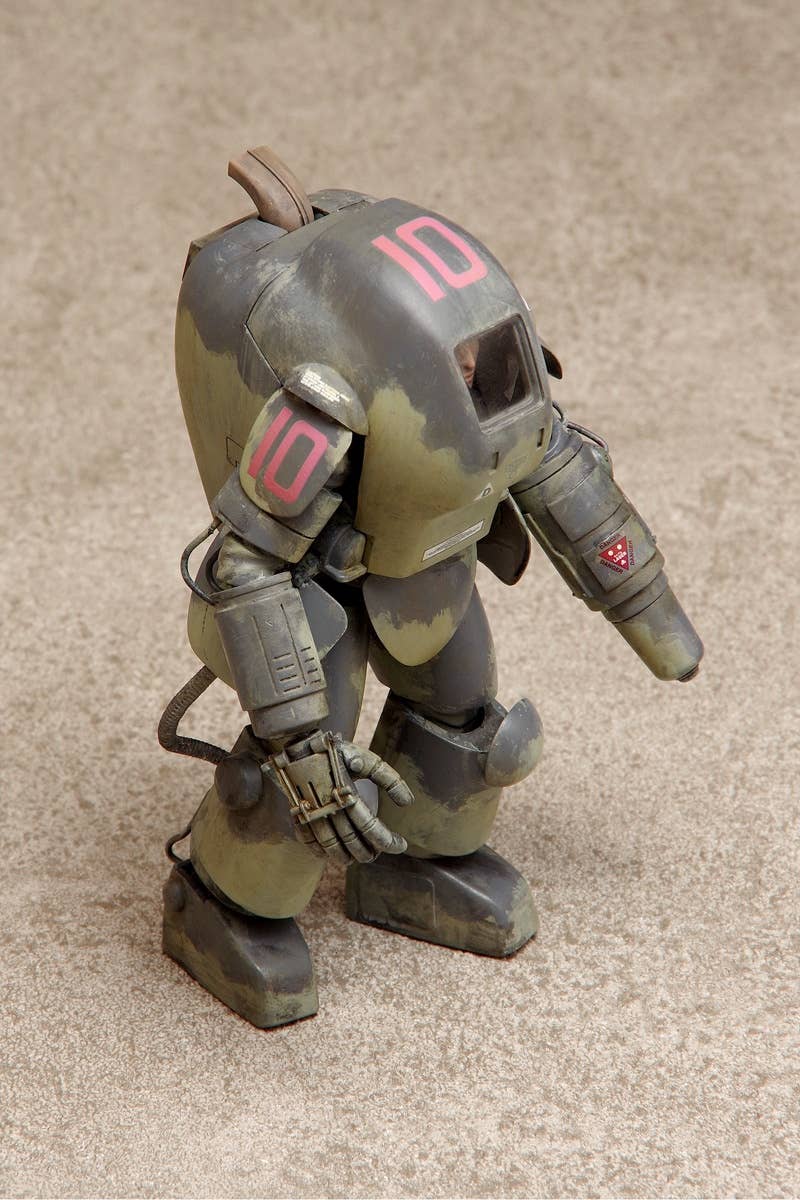 The S.A.F.S. Prototype was originally developed from a fitness-building suit within the "Maschinen Krieger" universe; this kit adds new prototype parts based on the A.F.S. Mk. I. It features snap-fit assembly so no glue is necessary. It'll be about 10.5cm tall when assembled; decals are included too. Molded in silver-gray and clear plastic.