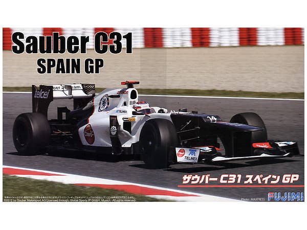 A detailed kit of the Sauber C31 Formula 1 car as raced in the 2012 Spanish Grand Prix. Markings for cars #14 (Kamui Kobayashi) and #16 (Sergio Perez) are provided.