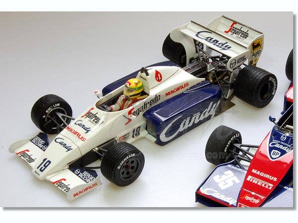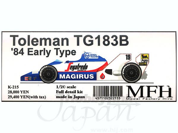 A fantastic 1/20-scale multi-media kit of the Toleman TG183B F1 '84 "early type" car. Model Factory Hiro's kits include resin-cast bodies, rubber tires, aluminum wheels, white metal suspension and detail parts and decals. Full engine detail is included. Assembly instructions are mainly pictorial with some guidance in English. Due to the complexity and multi-media nature of the kit, it is recommended for more experienced modelers, although any modeler confident in the basics of model building should be able to achieve good results.