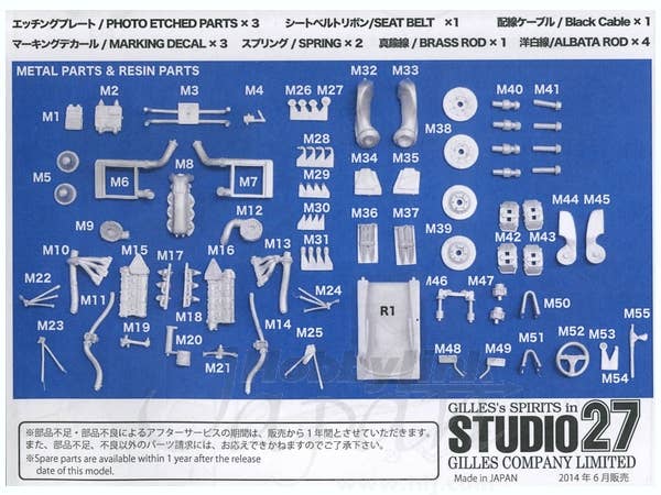 A trans kit for Tamiya's 1/20 FW11 kit (not included, linked below). Includes cast metal and photo-etched metal parts, plus decals.