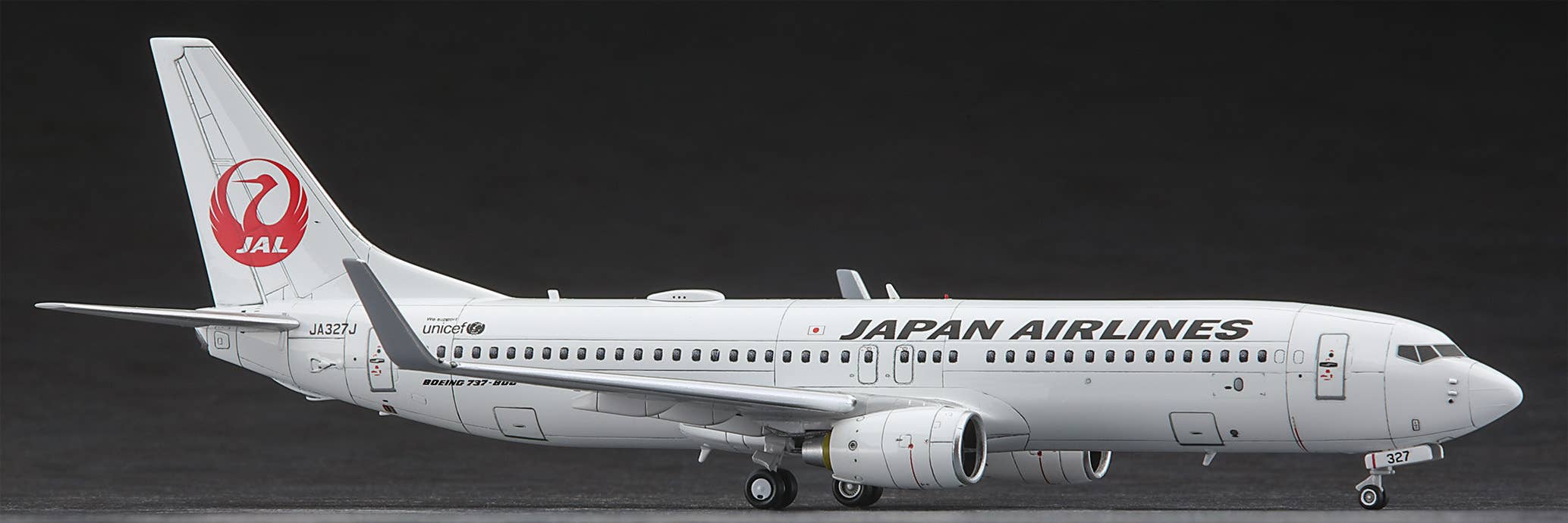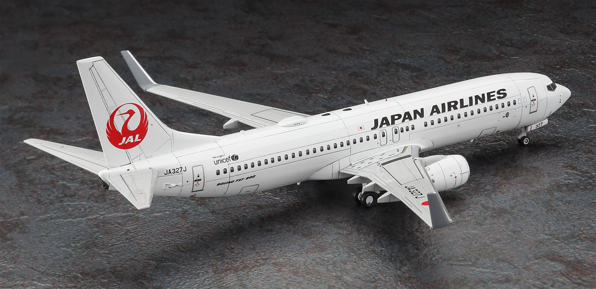 This 1/200-scale model kit from Hasegawa reproduces the JAL Boeing 737-800 used on domestic routes. The parts are molded in white for the fuselage and gray for the wings; the fuselage is split into left and right halves. The windows are represented by decals, and a display stand is also included. Place your order today!