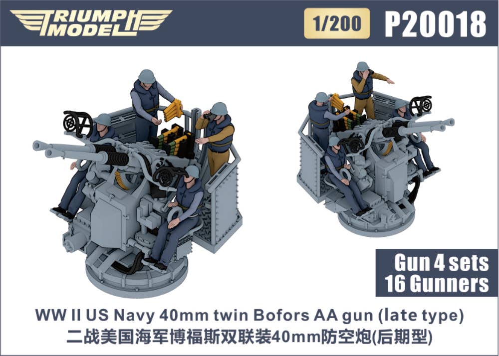 1/200 WW II US Navy 40mm twin Bofors AA gun (late type) 4 sets+16 Gunners