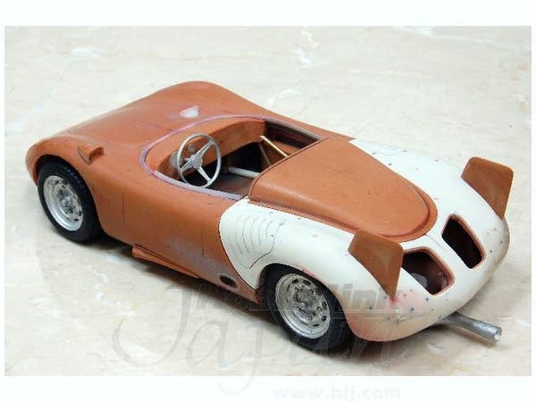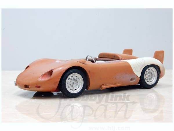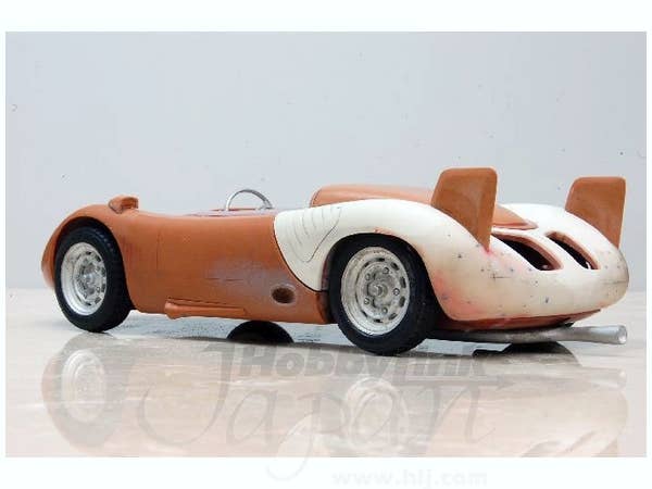 This is a racing car model kit assembled from parts made of resin, white metal, photo-etched metal and possibly other materials.