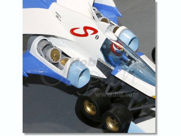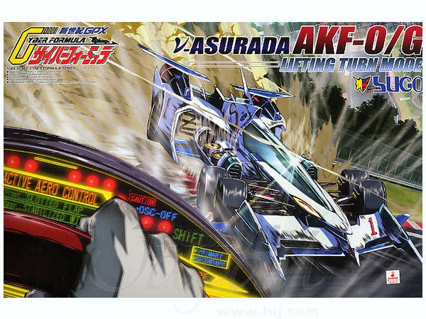 Here's a sharp injection-molded plastic kit of the Asurada AKF-0/G racer in "Lifting Turn Mode," from the fascinating world of "Cyber Formula"! Includes rubber tires, a sheet of waterslide decals, and a vinyl figure of driver Hayato Kazami in a sitting position. The car comes molded in white and black.