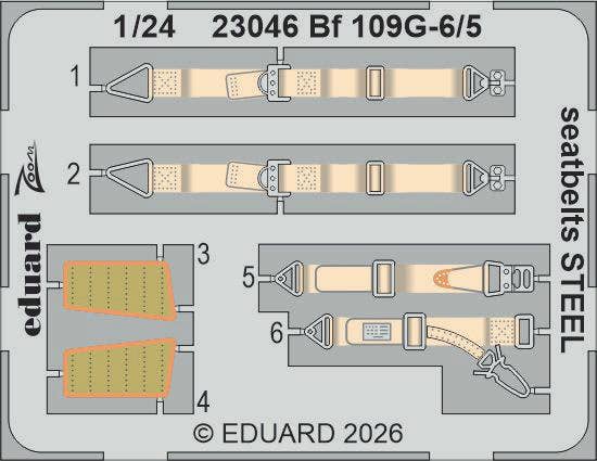 1/24 Bf 109G-5/6 seatbelts STEEL (For AIRFIX)