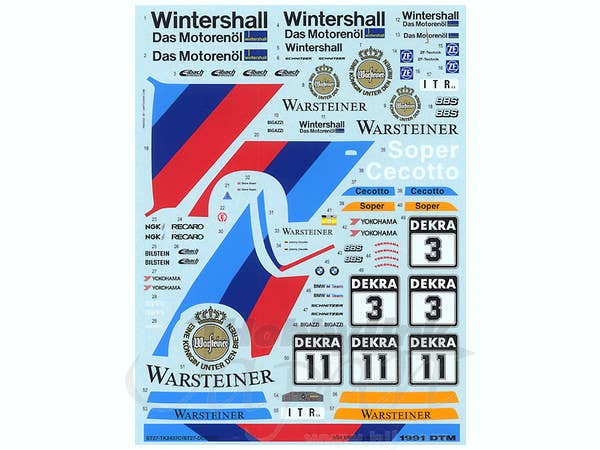 This is a sheet of water-slide decals for marking car models.