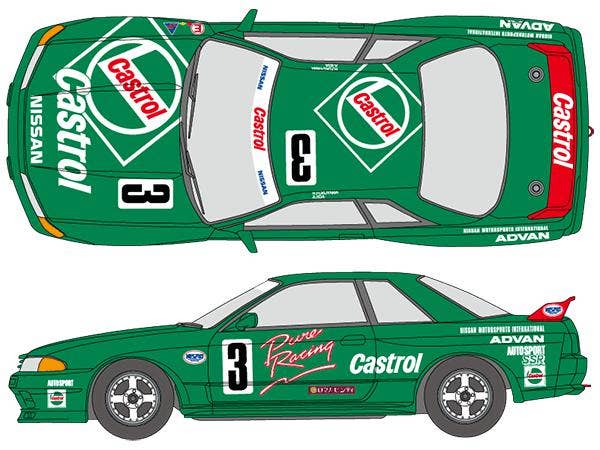 This is a set of beautifully printed water-slide decals for the Castrol RB GT-R Gr.N 1992!