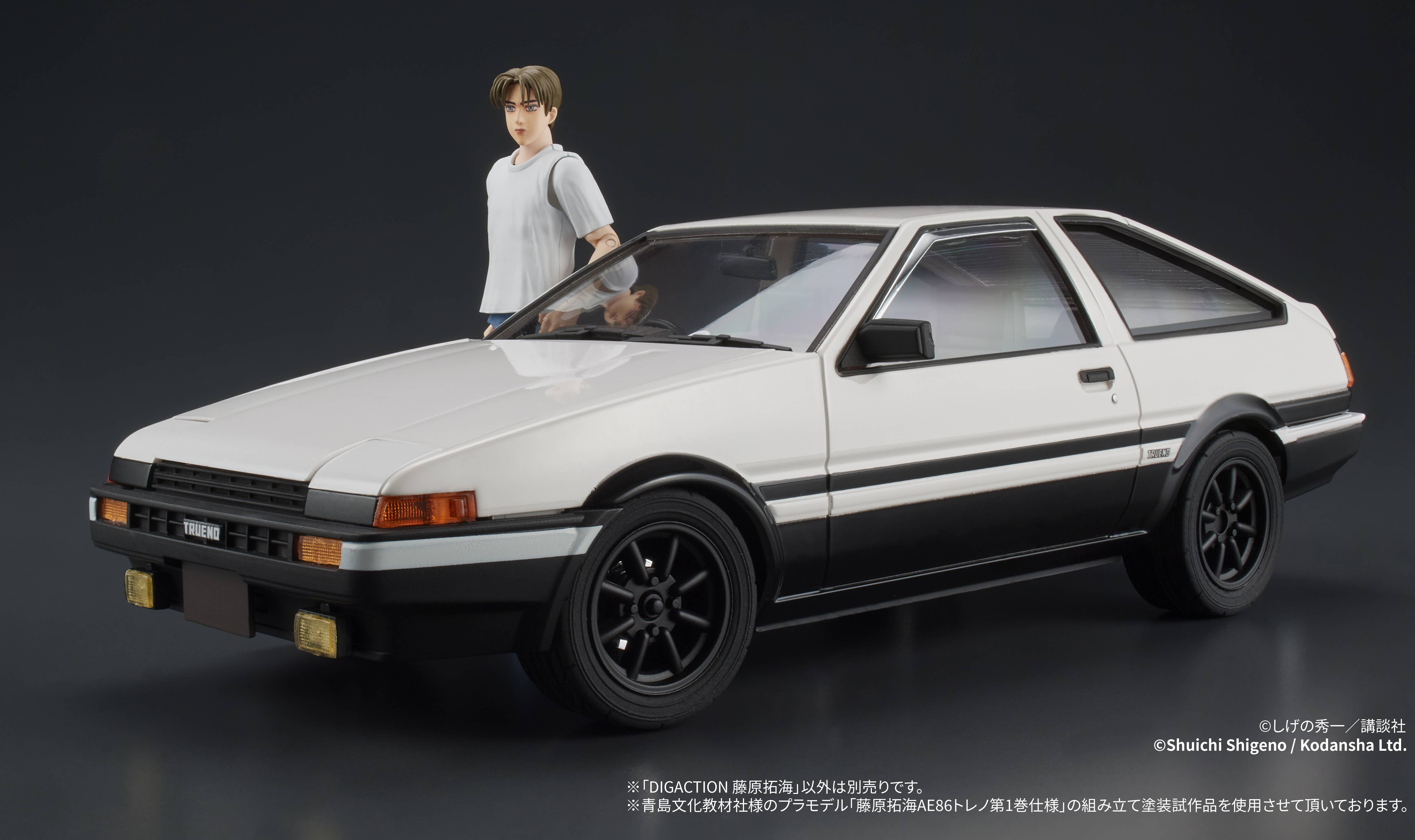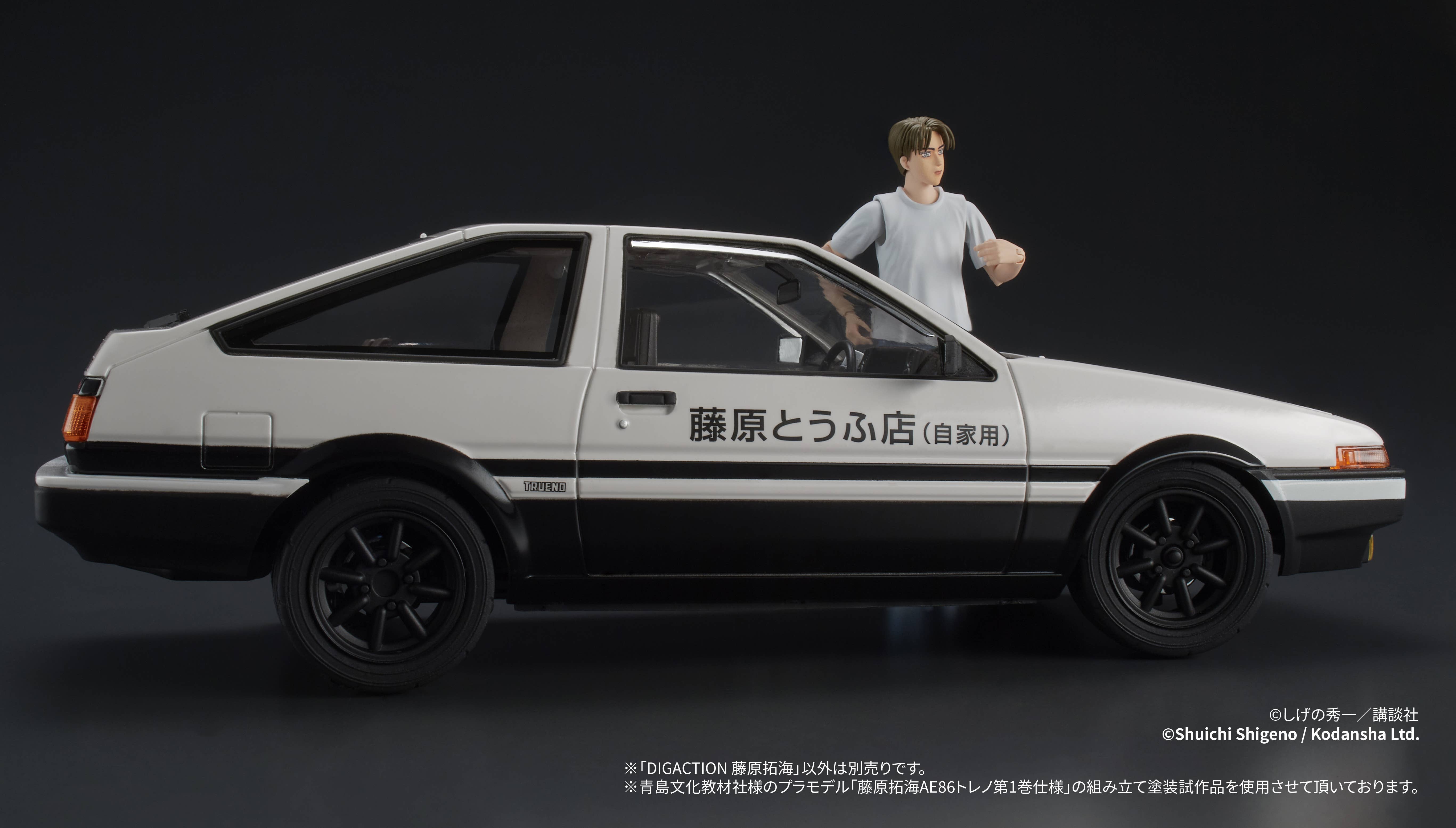 The 1/24-scale Takumi Fujiwara AE86 Trueno Vol. 1 Specification model kit by Aoshima is not included and is sold separately.