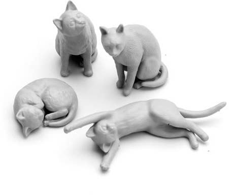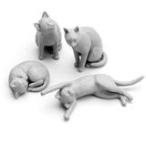 The model depicts cats sleeping, stretching out their paws to be cared for, or sitting and looking up at you.
