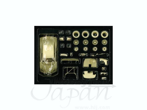 This is a racing car model kit assembled from parts made of resin, white metal, photo-etched metal and possibly other materials.