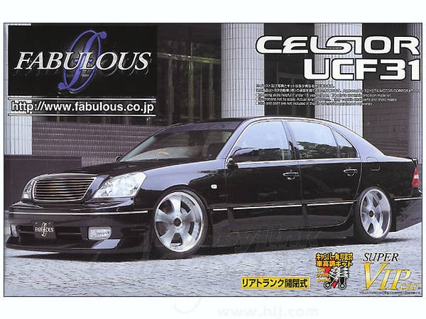 Aoshima's VIP Car series offers unique versions of some of Japan's finest passenger sedans. In addition to the standard parts for the car, these kits come with the customized aero-skirt parts and oversized, fancy wheels and sports tires seen in the box illustration. Many kits in the series include modified exhaust parts, too. Like all of Aoshima's auto kits, the wheels on the model turn and steer after completion.