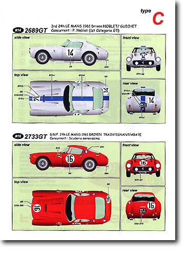 1/24 metal kit of the Ferrari 250SWB Late Type C. These metal kits consist of metal bodies, rubber tires, aluminum wheels, white metal suspension and detail parts and decals. Full engine detail. Assembly instructions are in Japanese only, but if you're an experienced garage kit or race car modeler, you should be able to work your way through.