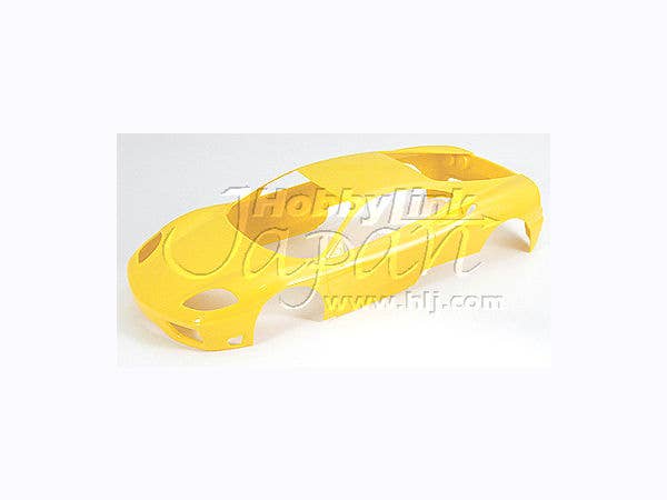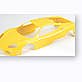 Body molded in yellow. Interior in black. Engine in metallic gray. Chassis in black. Matte chrome rims. Wheels turn and steer after completion.