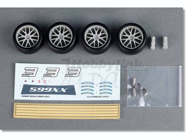 This is a resin, PE, metal, rubber tires, and decals super-detail set for the Ferrari 599XX. For the Fujimi kits.