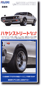 Set of 1/24 rubber tires and plastic wheels for use in customizing car models. Matte chrome rims.