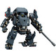 The Bulkarm Alpha is the longest-used Hexa Gear mech in history, and its type has spread all over the world. It was originally developed as working heavy machinery, but it has been adapted for battle with a tank cannon attached directly to its left arm and robust armor; it's also the first Hexa Gear with an enclosed cockpit. This example is equipped with its characteristic Iron Fist main gun, which can be hung on the back of the Hexa Gear when not in use, and it also comes with two types of head unit. The hands can be expanded and connected with manipulators to use optional weapons.