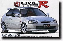 Good kit of this all-time best-selling economy coupe. Includes the sport seats, spoiler, etc. of the "Type R." Can be built with either left or right-hand side steering wheel. Rubber tires. Wheels turn and steer.